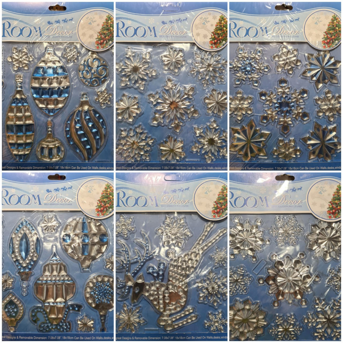 Наклейки новогодние объёмные YQQ. Микс.