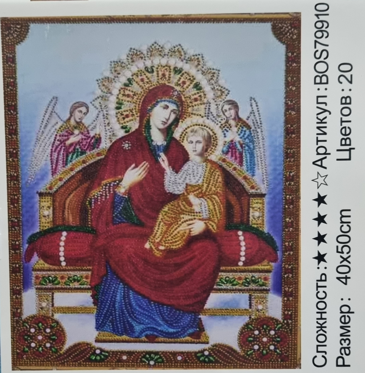 Комплект: Холст с нанесенным рисунком, покрытый клеем сильной фиксации.