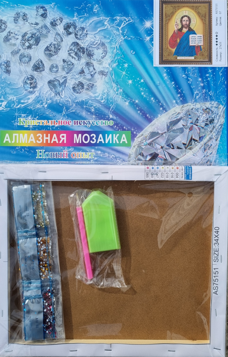 Алмазная мозаика на подрамнике. Православная. Арт.75151 Измерения 27*33 см.