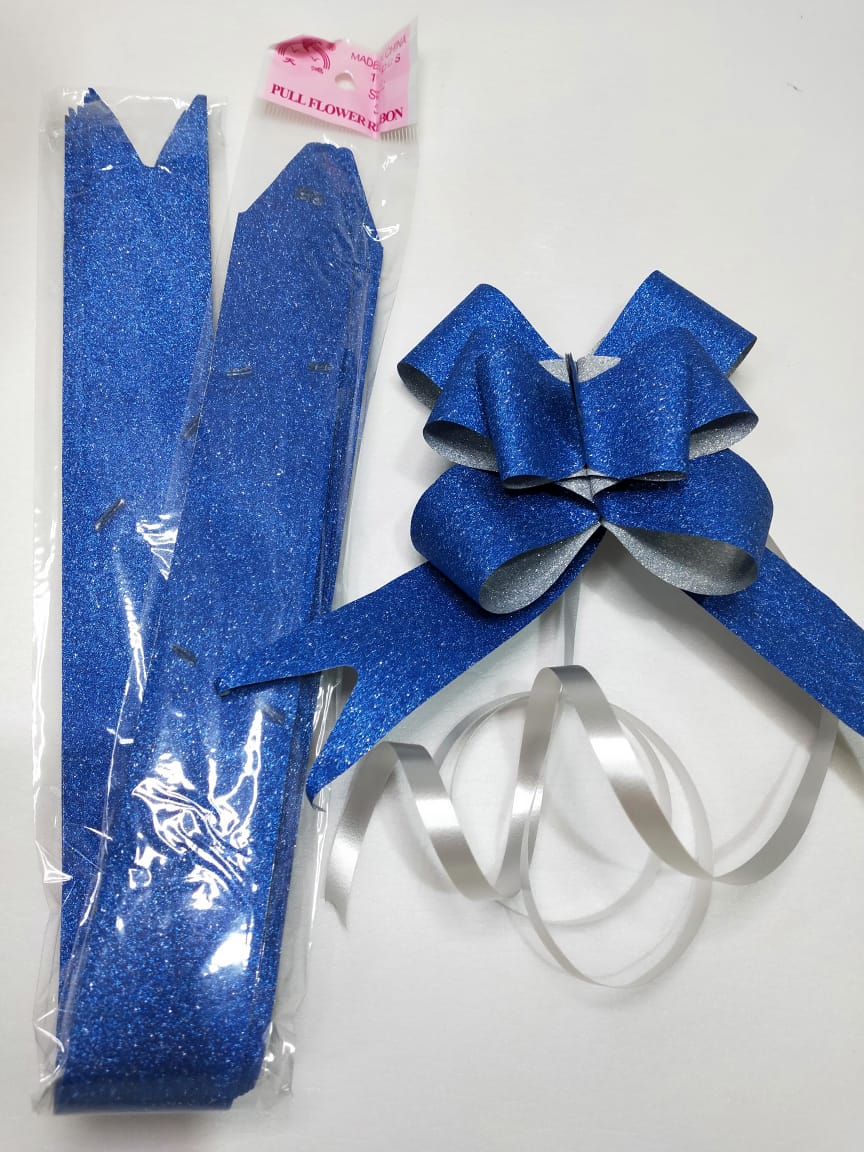 Бант складной "Синий с серебряной крошкой", Диаметр 10 см, Упаковка 10 шт