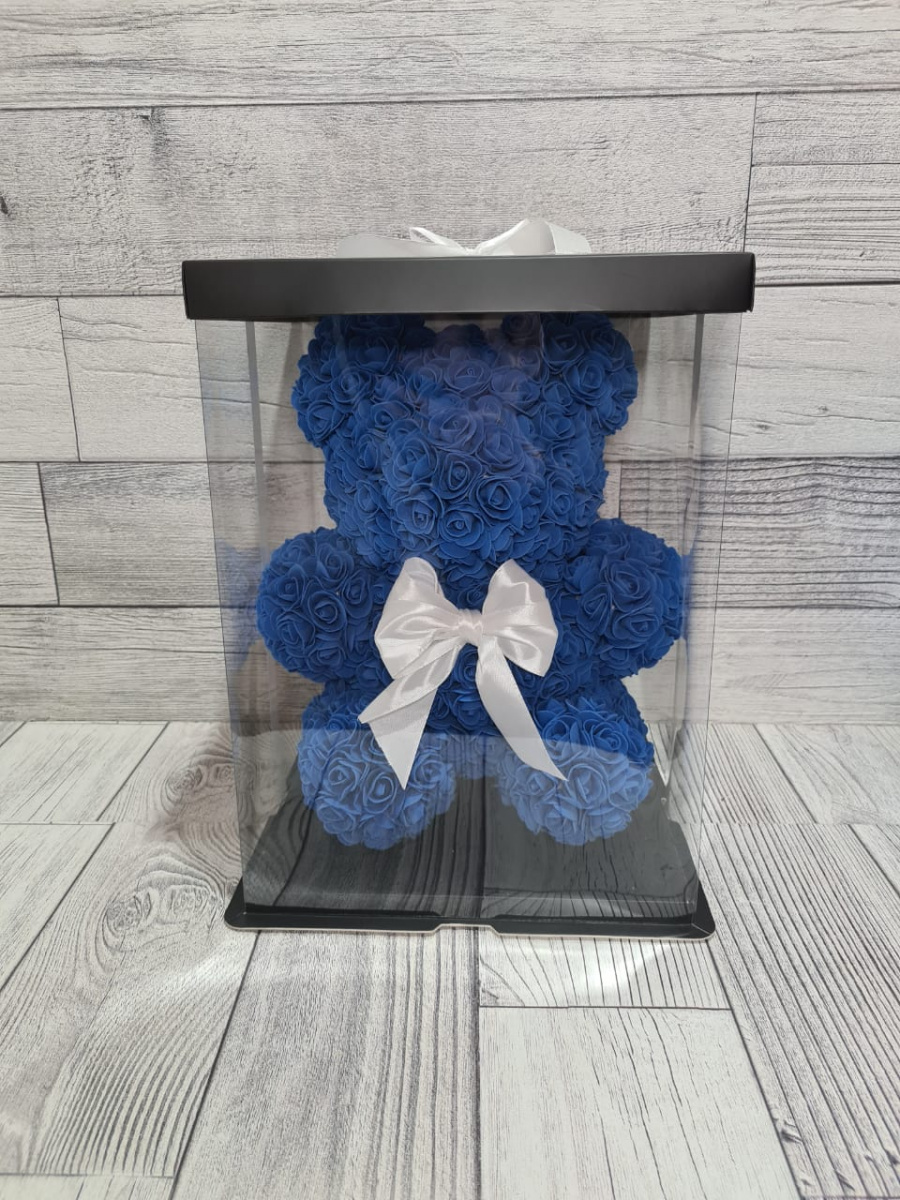 Медведь в цветах. Цвет синий. Высота 35 см, ширина 27 см