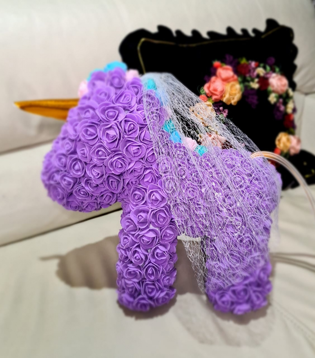 Цветочный Единорог в подарочной коробке. Цвет фиолетовый