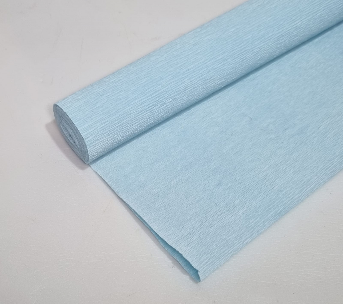 Гофрированная бумага. Цвет бледно голубой. Ширина 50 см, длина 250 см.