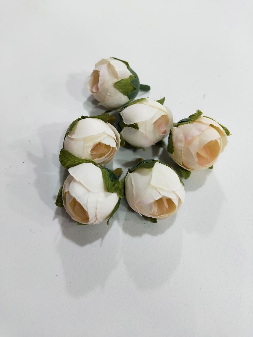 Роза бутон №7 бело-кремовый . Ткань 2,5 см . Упаковка 10 шт