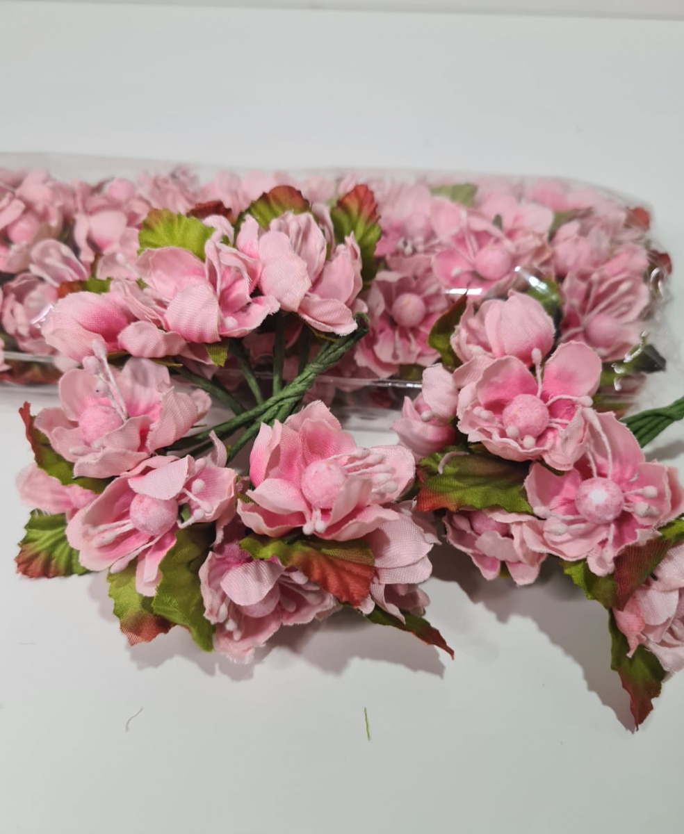Цветы на ножке с круглой сердцевиной. Цвет розовый. Ткань. Размер цветка 4-4,5 см. Букет 6 цветов. Упаковка 72 шт. Вес 60 гр.