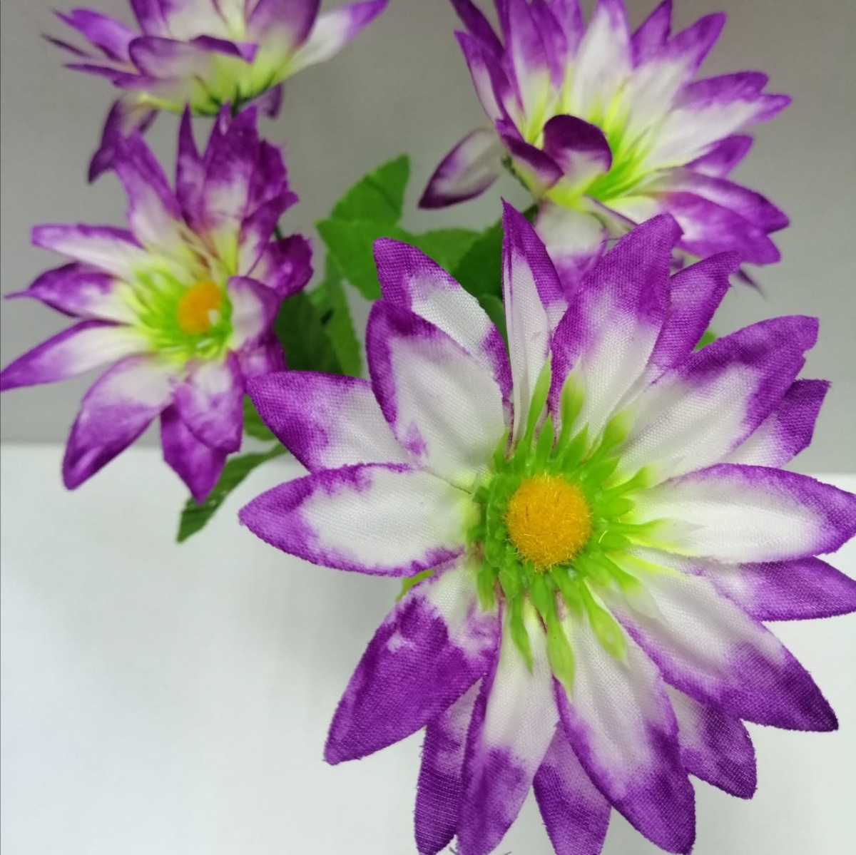 Букет хризантем "бело-фиолетовый", высота 30 см, 5 голов, ткань. Упаковка 5 шт.