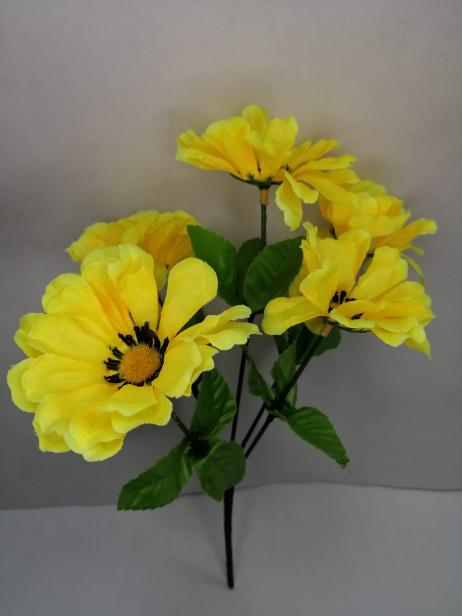 Букет космеи "желтый",  высота 29 см, 5 голов, ткань. упаковка 5 шт