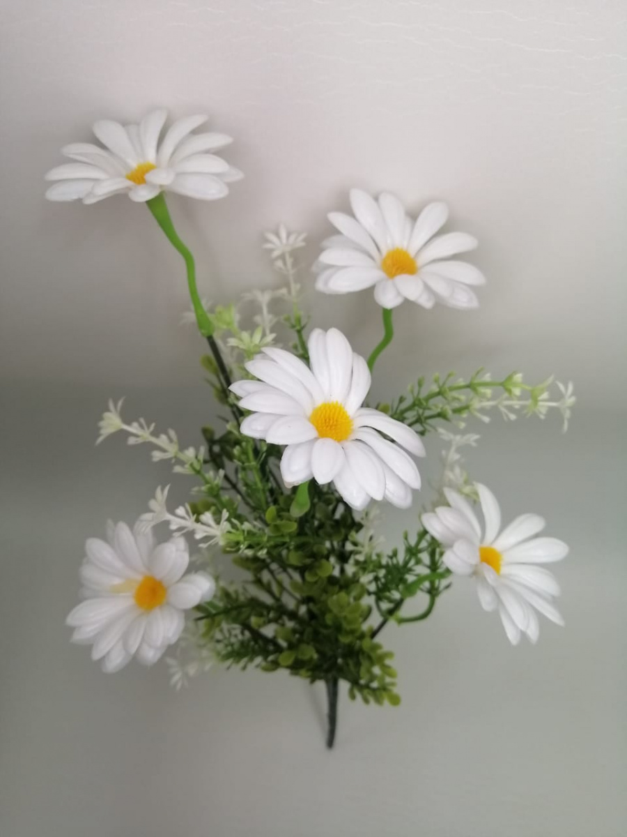 Букет ромашек "белый". Упаковка 2 шт. высота 39 см, 5 голов, пластик