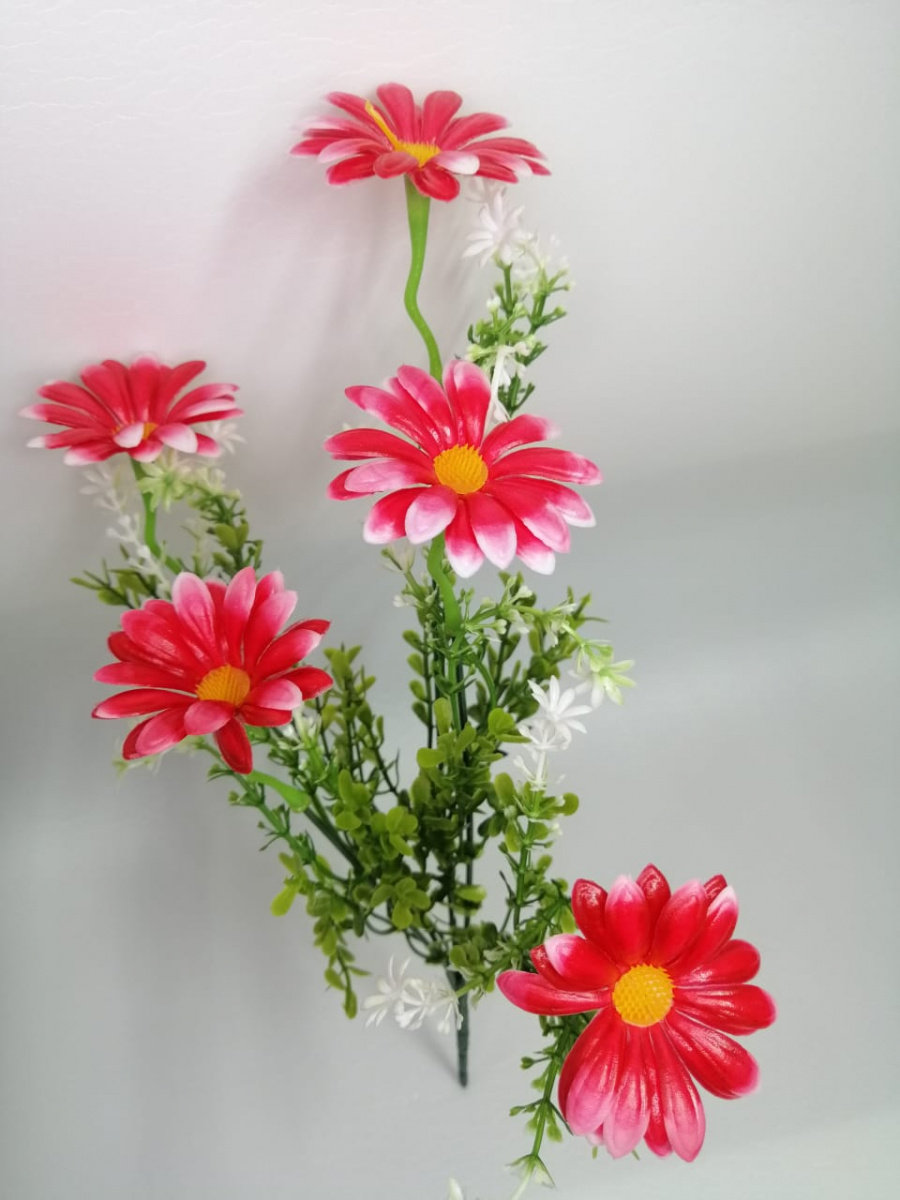 Букет ромашек "красный", высота 39 см, 5 голов, пластик. Упаковка 2 шт.