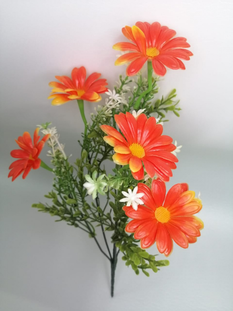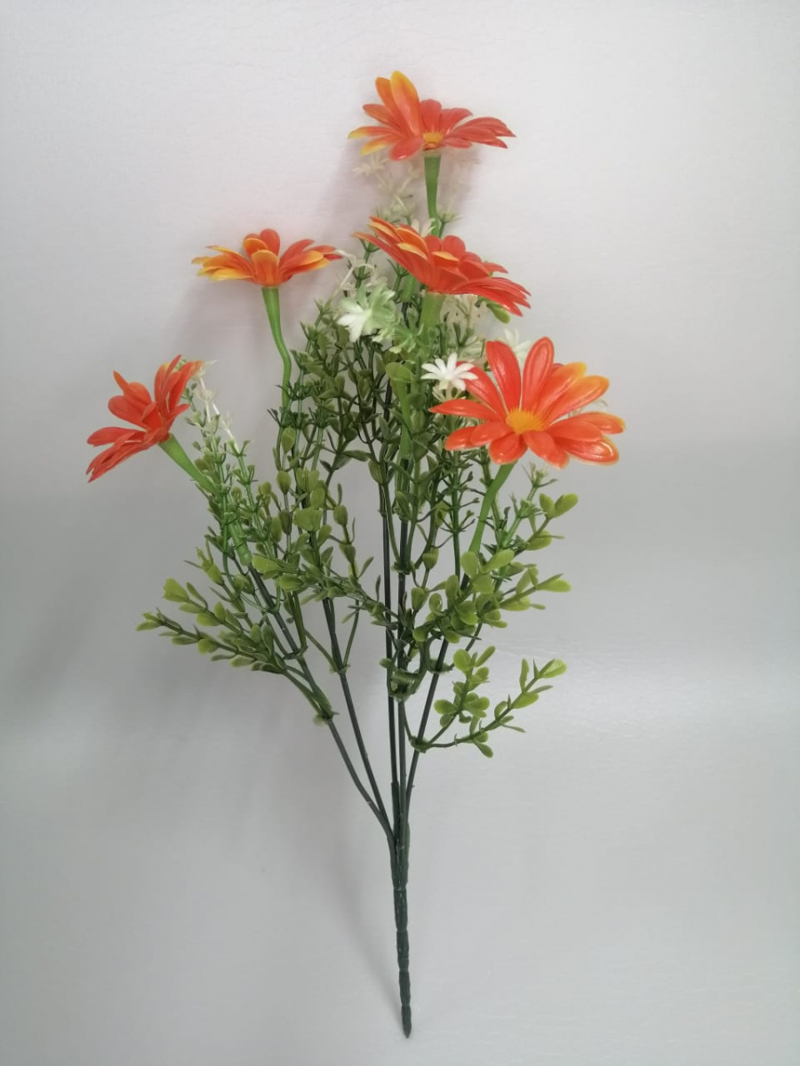 Букет ромашек "оранжевый", высота 39 см, 5 голов, пластик. Упаковка 2 шт.