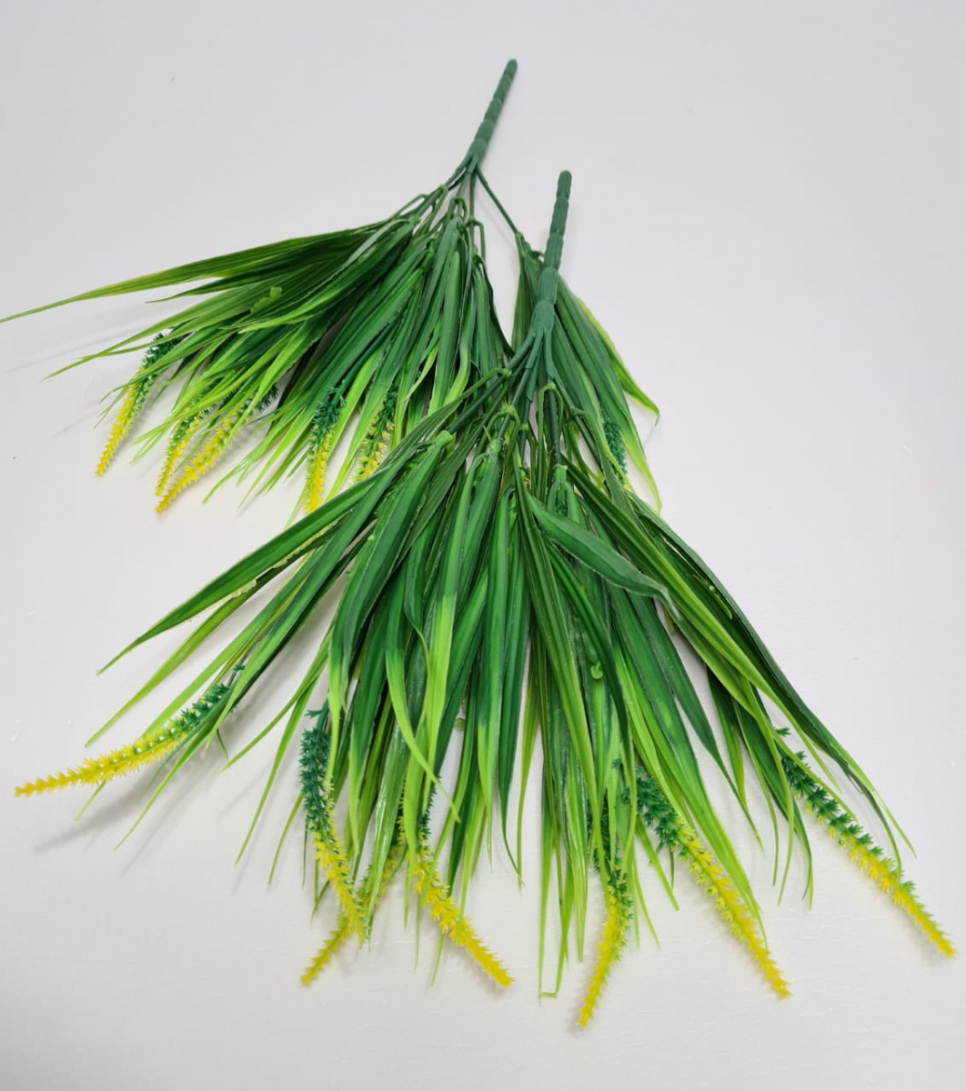 Искусственная травка.  Набор 2 букета. Цветущая Осока. Цвет жёлтый.