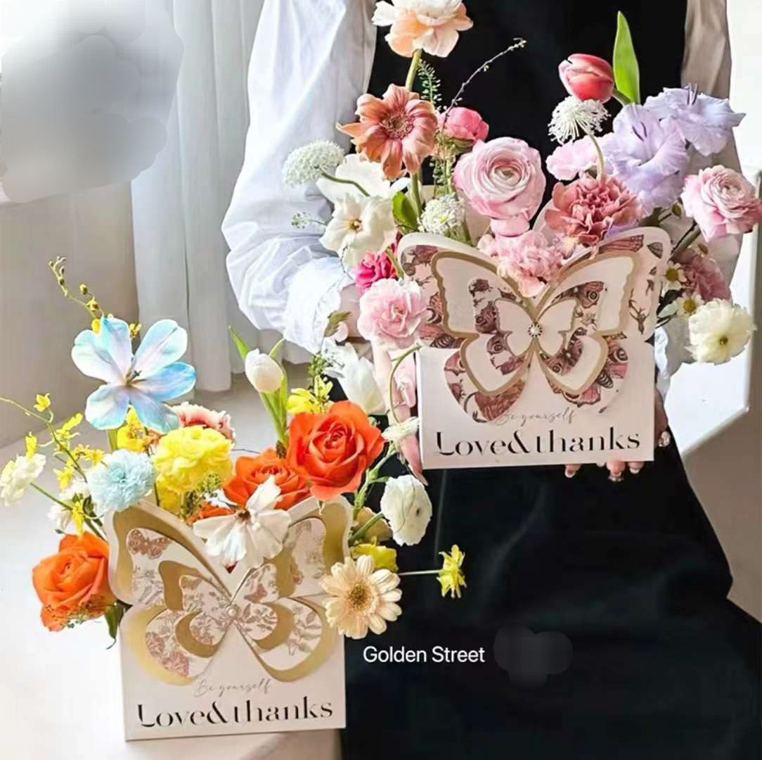Кашпо бумажное бабочки. Двухстороннее, самосборное. Размер высота 20 см, длина 18 см, ширина 8 см.