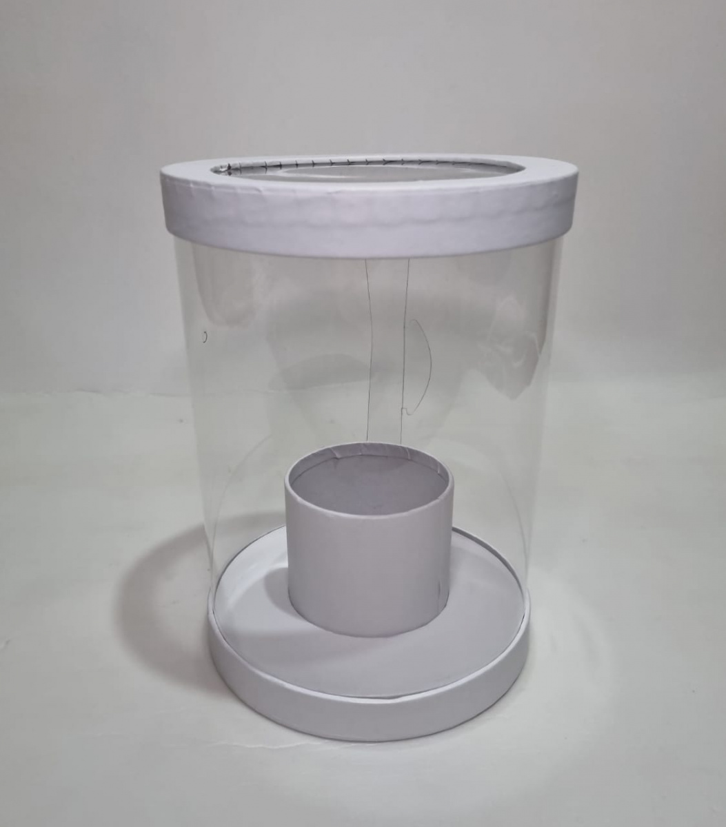 Коробка круглая прозрачная, с внутренним стаканом. Цвет белый.