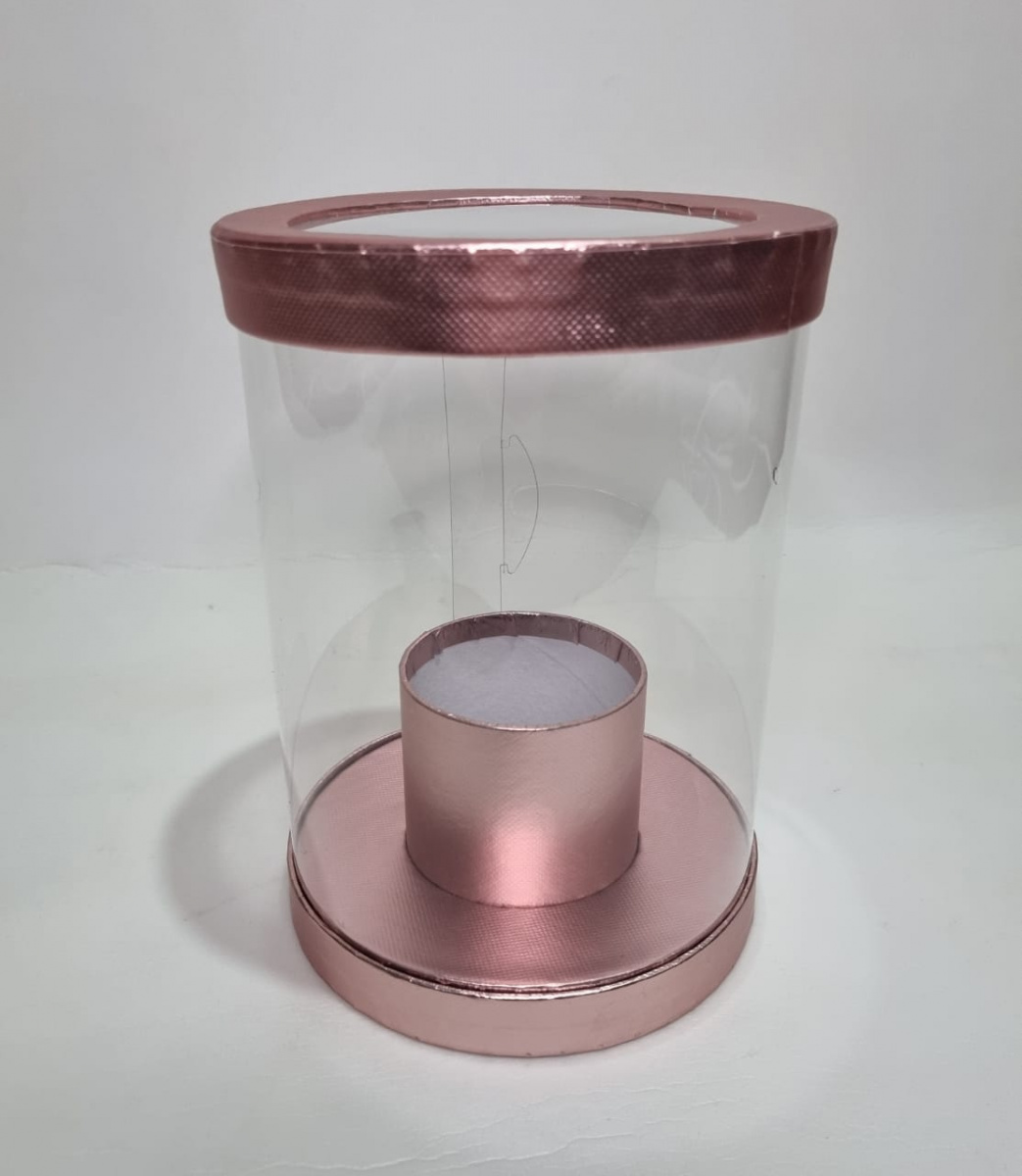 Коробка круглая прозрачная, с внутренним стаканом. Цвет бронза.