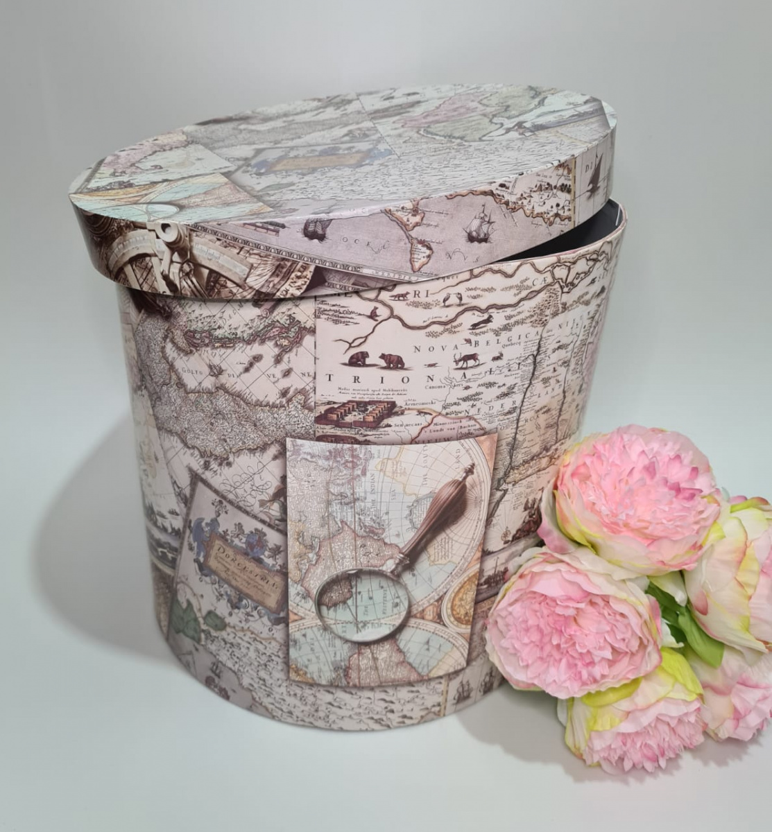 Коробка круглая . Путешественник. Размер 30*30 см.
