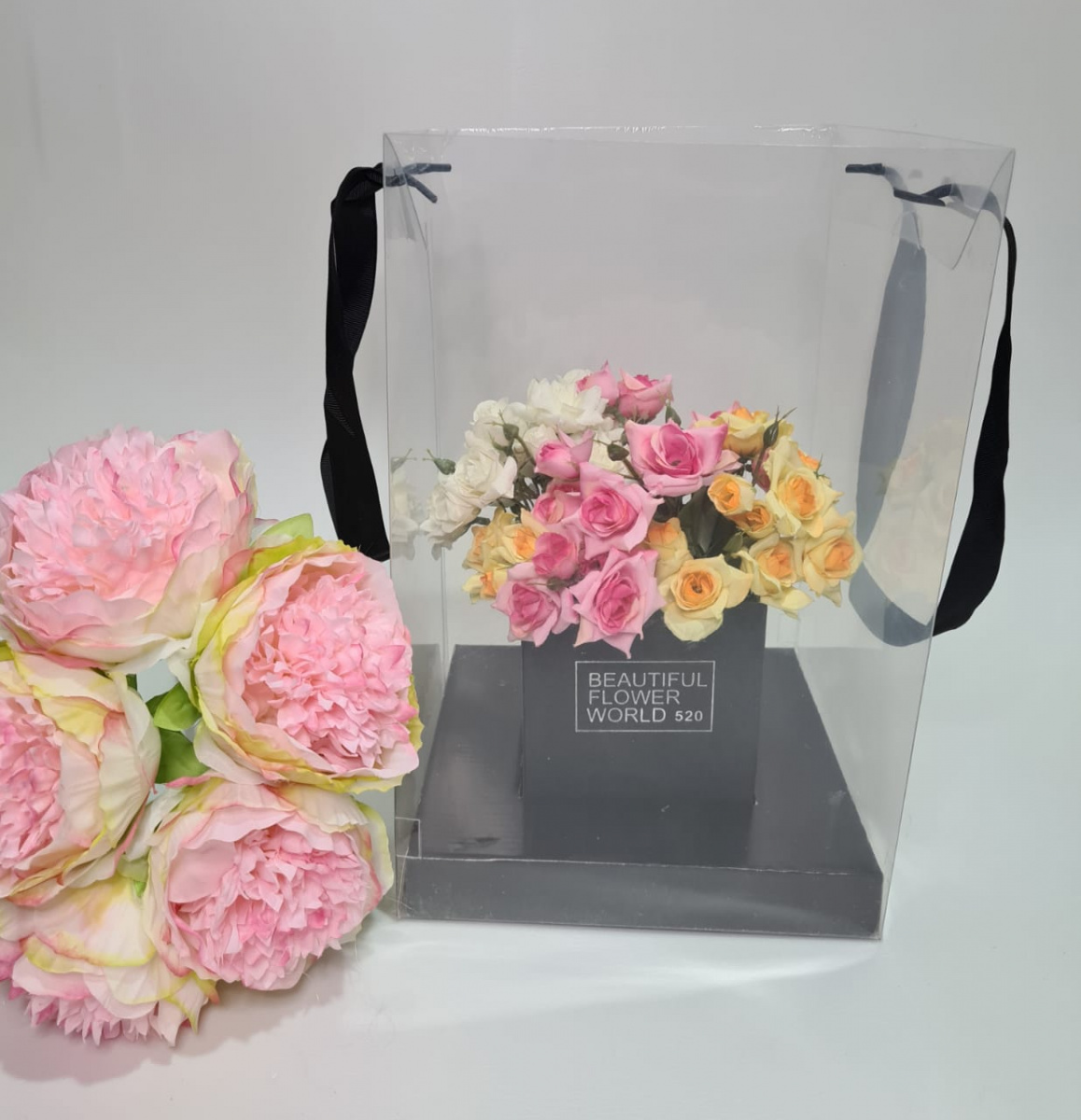 Коробка прозрачная с ручками. Размер 31*20*20 см.