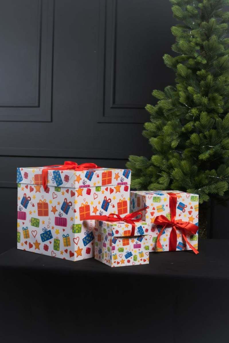 Набор коробок 3в1. Белый с подарками. Размер 10*10, 15*15, 22*22 см.