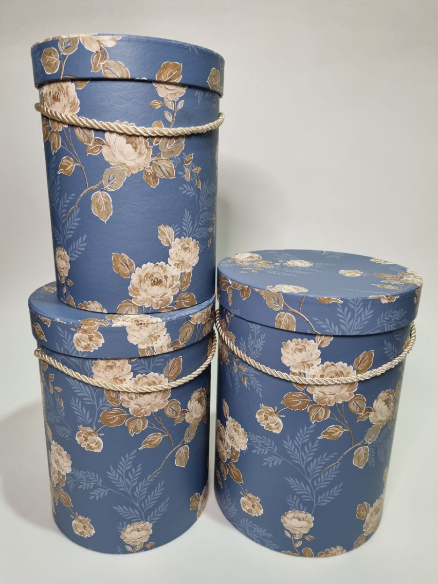 Набор коробок 3в1. Пионовидные цветы. Цвет синий.