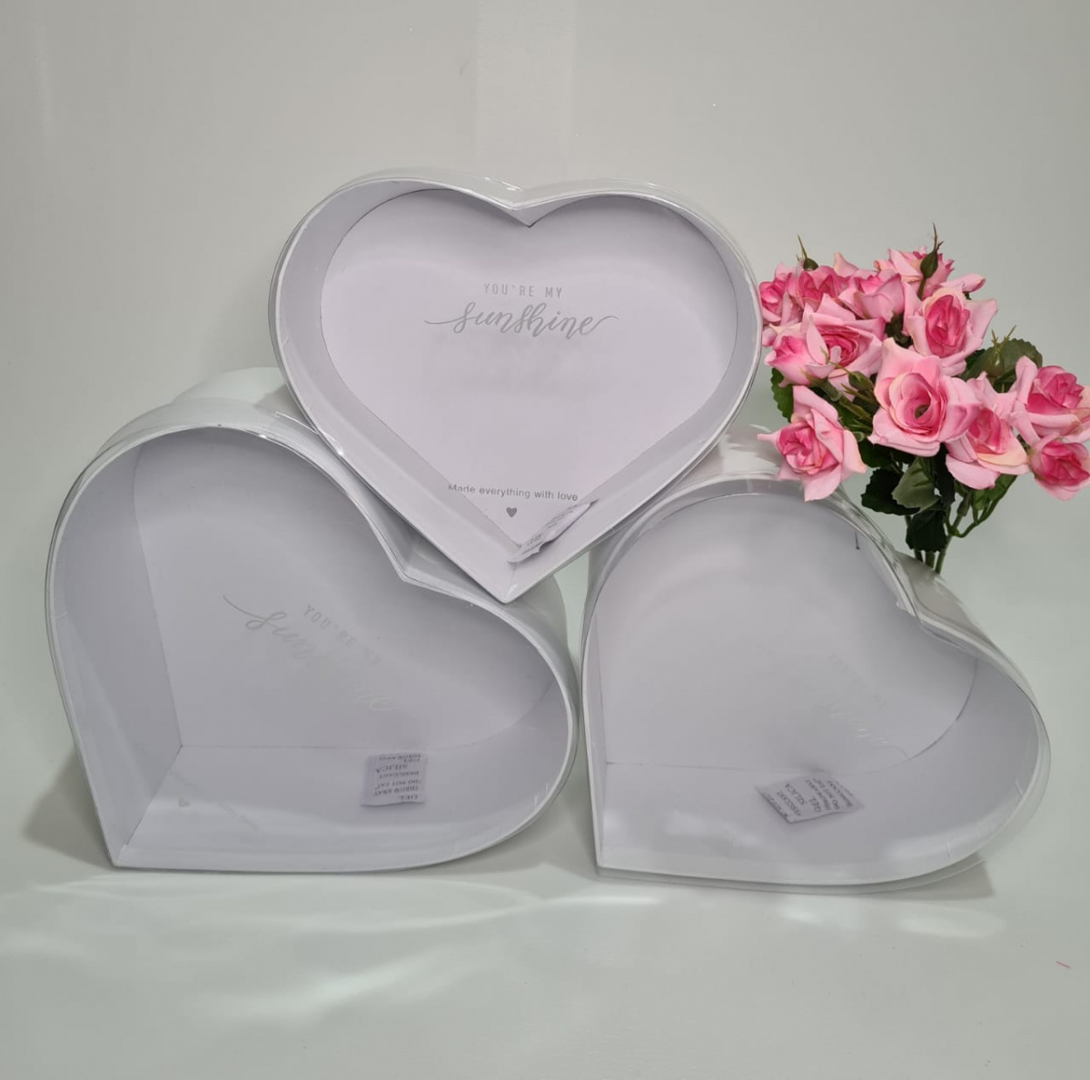 Набор коробок 3в1 с прозрачной крышкой. Сердце белое