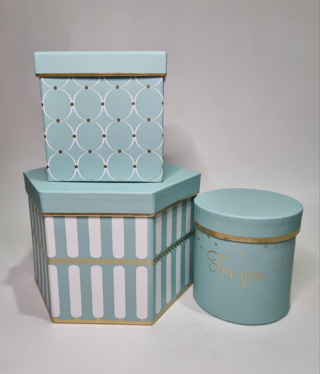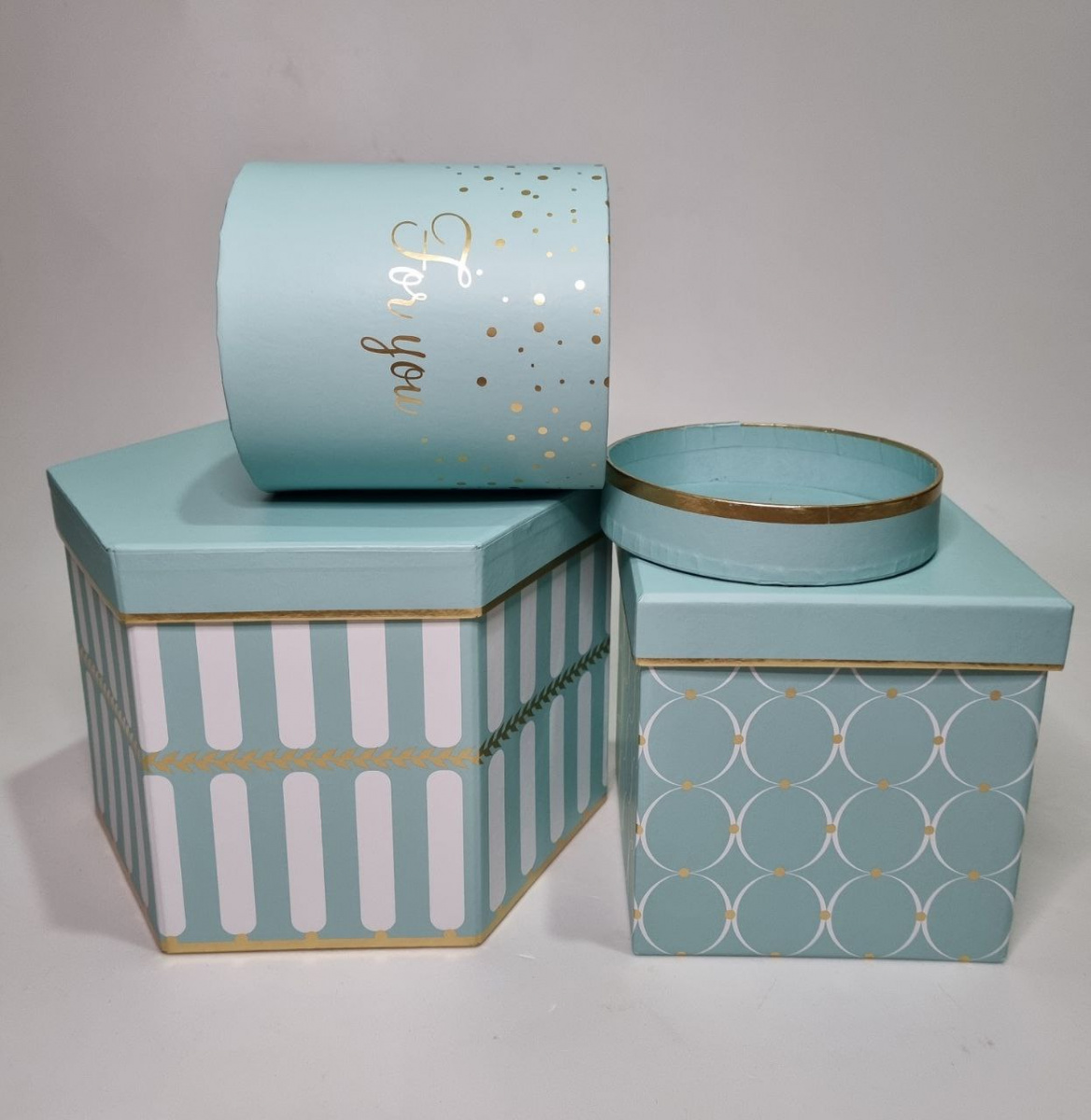 Набор коробок 3в1. Цвет бирюзовый.  Ромб, квадратные, цилиндр.