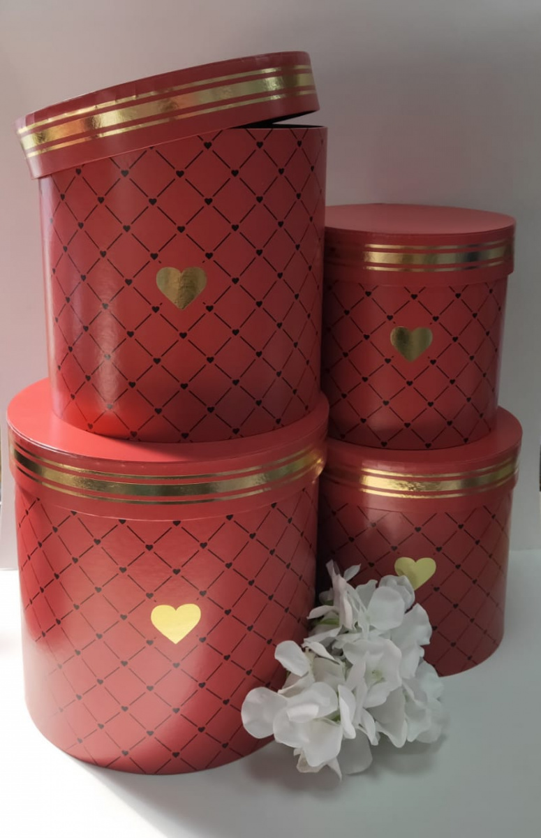 Набор коробок 4в1. Золотое сердце крас. Размер 20*20,18*18,16*16,15*15 см.