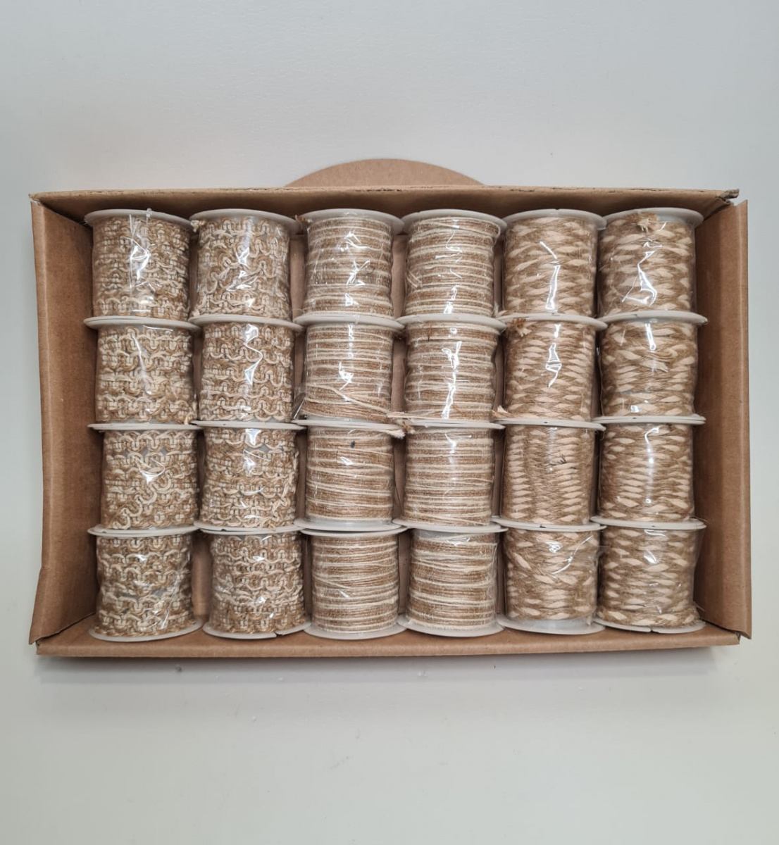 Тесьма декоративная. Комбинация тёмный и светлый лён. Упаковка 24 шт.