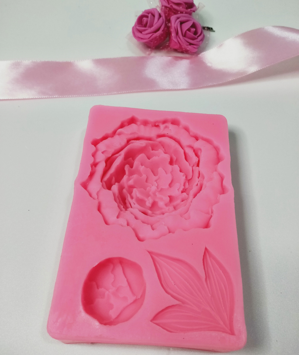 Молд Роза, бутон и листок, 13*8,5 см объемный.