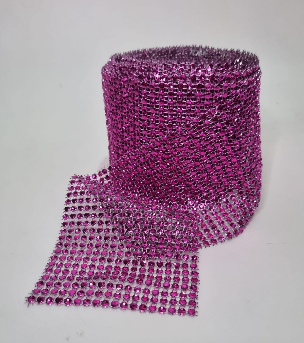 Стразы-обманки на полотне. Ширина 12 см, длина 9 метров. Цвет ярко розовый.
