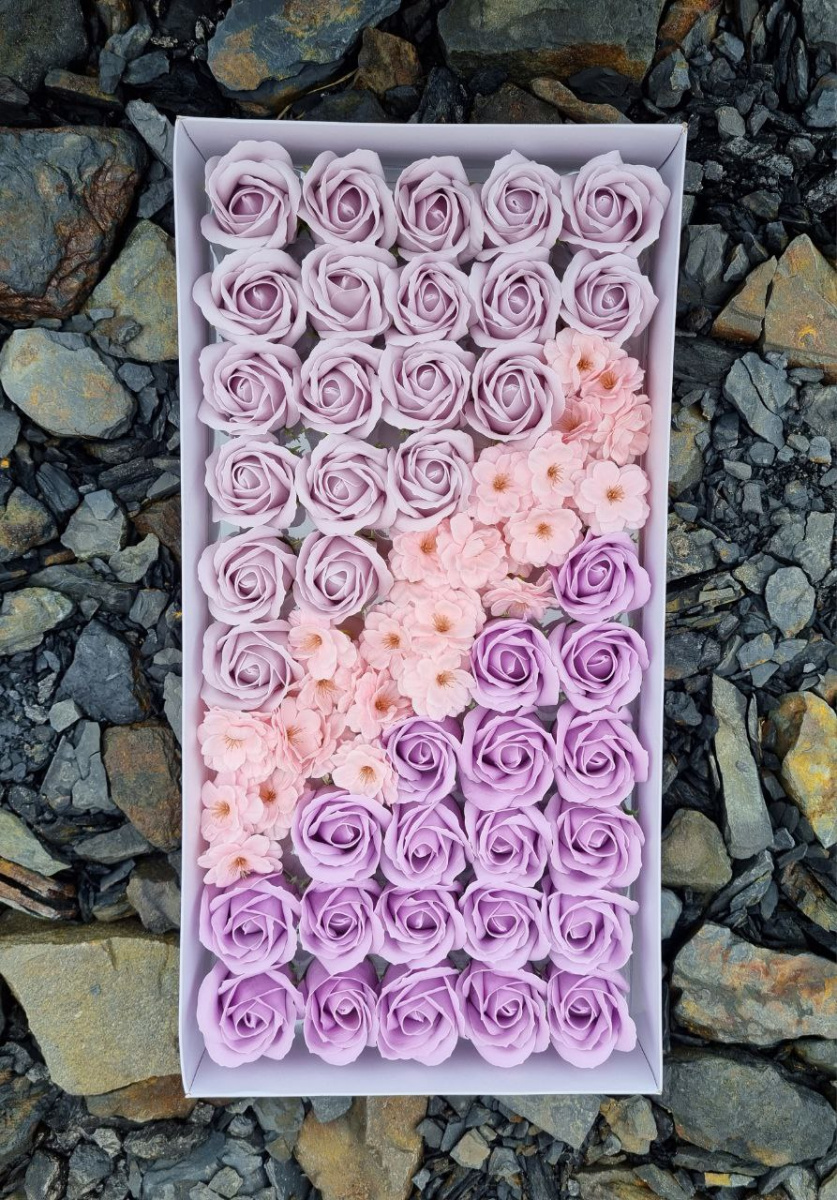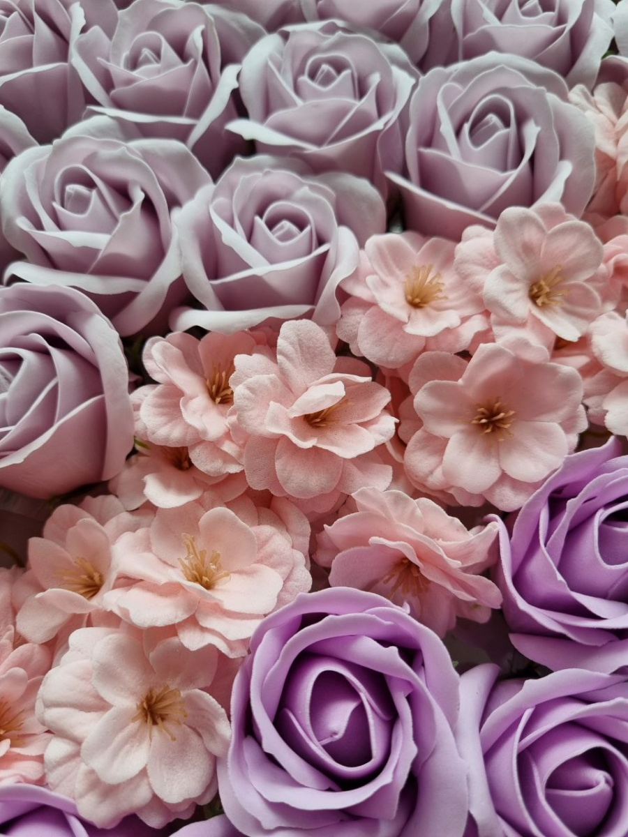 Набор цветов Лавандовый Микс. Роза 3/53, сакура розовая. Упаковка 50 шт